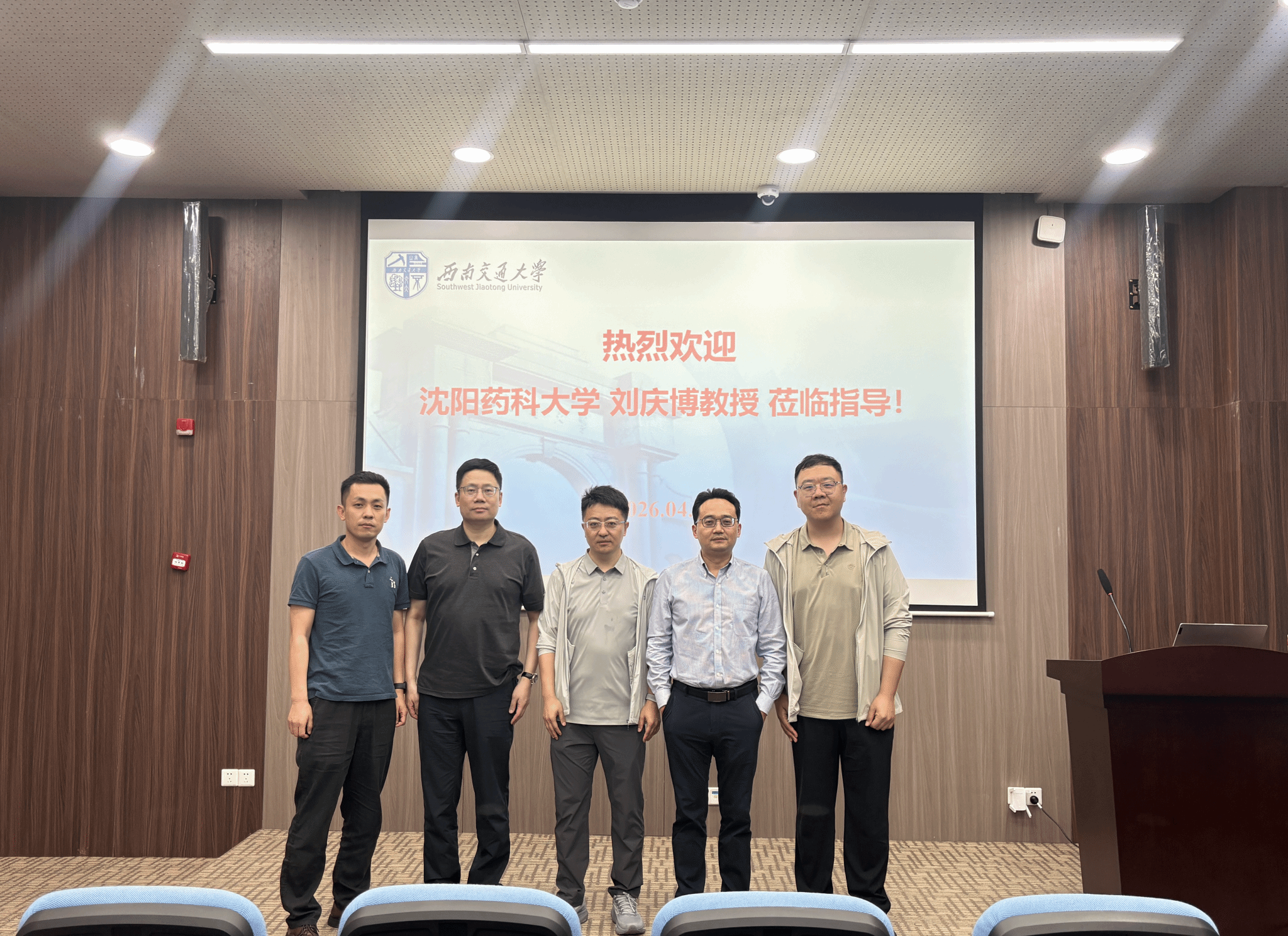 2026年4月25日下午,沈阳药科大学中药学院天然药物化学教研室主任——刘庆博教授应邀来我院进行参观访问,并于西南交通大学工业中心C座103报告厅开展了一场题为《抗肺癌萜类化合物的发现、结构优化及分子机制研究》的高水平学术报告。本次讲座由我院教授委员会主任高峰教授主持,出席本次交流会的有:四川大学生物治疗国家重点实验室刘博教授、沈阳药科大学中药学院白明副教授、我院张岚副教授,及五十余名天然药物化学方向研究生。