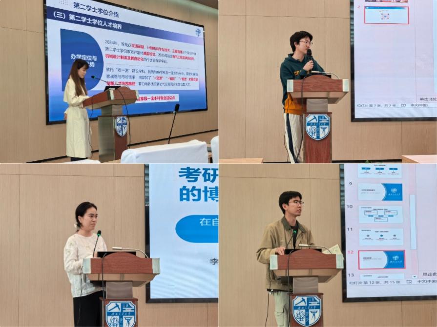 4月23日上午,学院在犀浦校区二号报告厅举办第二学士学位专题宣讲会,峨眉校区辅导员宁诗涵围绕培养定位、招生政策、学习模式与发展前景作了系统讲解,并重点介绍了峨眉校区的整体育人环境。经验分享环节,学生代表徐林结合当前就业形势,分析了继续深造对提升综合竞争力的重要意义,鼓励同学们通过第二学士学位提升自己的综合实力;李璐君从自身经历出发,分享了时间管理和心态调整的实用建议。