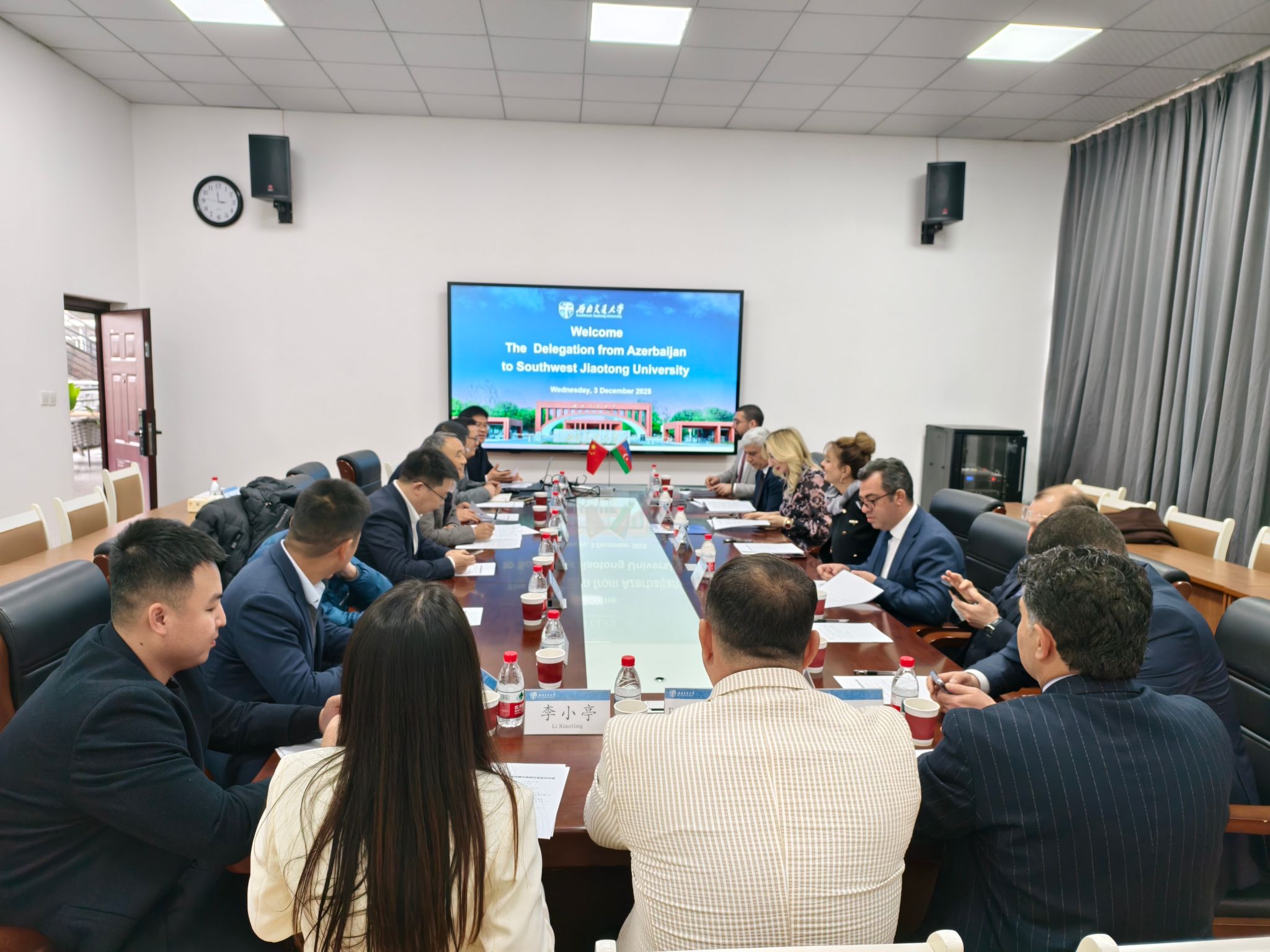 12 月 3 日下午,阿塞拜疆代表团访问西南交通大学,与生命科学与工程学院进行了交流座谈,双方就合作办学、人才培养、科研合作等议题展开交流。
