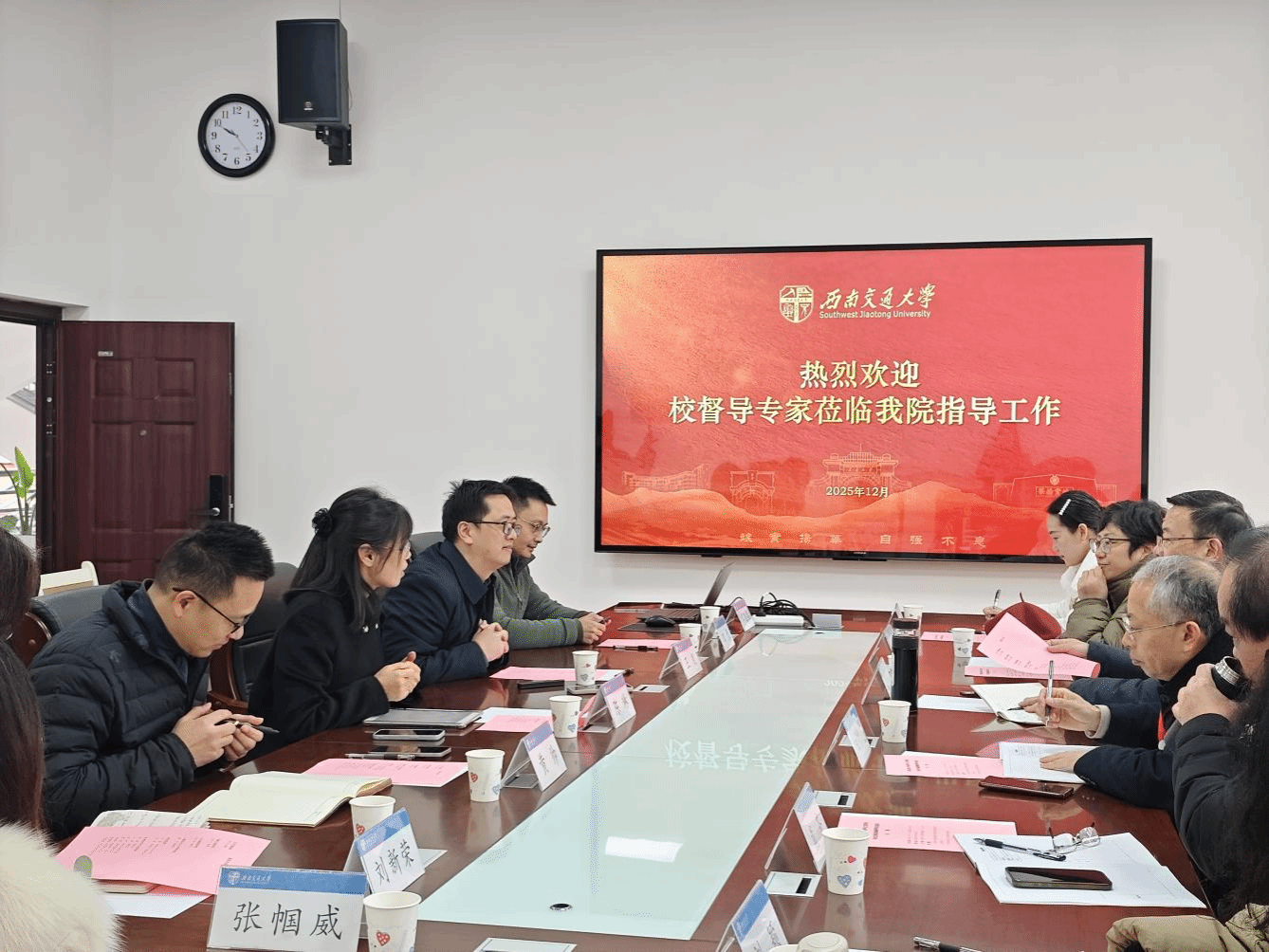 2025 年 12 月 17 日上午,西南交通大学研究生培养质量督导组组长赵人达教授、成员田怀文教授、郭红玲教授、戴齐副教授及校研究生院培养办公室主任刘颖、副主任吴双一行莅临生命科学与工程学院制药工程实验室实践基地开展调研指导。学院副院长陈琳、王毅及相关教学、实验、学生工作负责人共同参加。