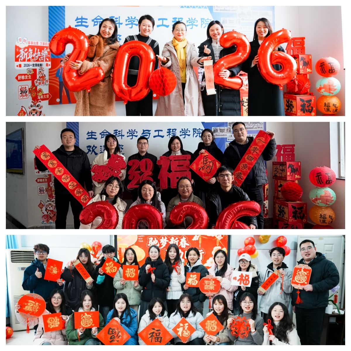 2026年1月21日下午,生命科学与工程学院“驰梦新春·聚力同行”新春游园会在九里校区J3609会议室及3教6楼中庭同步开展。学院师生及离退休教师齐聚一堂,在丰富多彩的传统年俗体验中,共同迎接新春的到来。