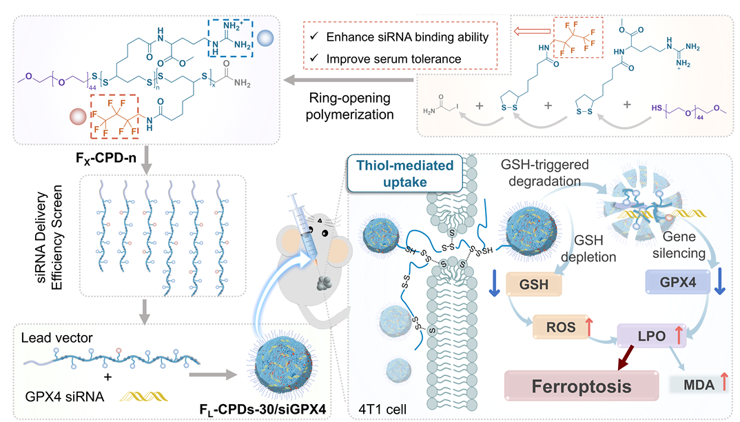 3. 在Acta Biomaterialia发表研究论文:基于氟化细胞穿透性聚二硫化物的硫醇介导途径递送siGPX4诱导肿瘤铁死亡