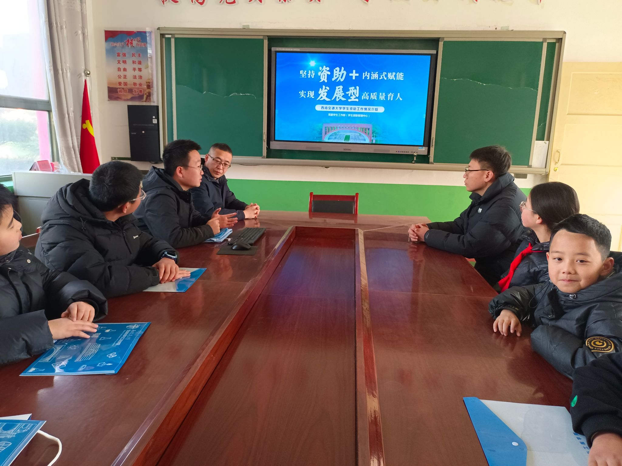 2月11日,实践队与秦安县西川中心小学校长杨虎成、校长王春芳、秦安县教育局蔡琪以及十余位西川中心小学收资助学生开展座谈交流。双方围绕高校资助政策、地方学生资助工作现状、校地合作路径等话题进行了深入探讨。金鹏帆老师介绍了西南交通大学“资助+” 内涵式赋能的高质量育人工作思路,强调资助工作不仅是对学生经济上的帮扶,更是对其成长成才的系统支持。秦安县教育局相关负责人对西南交大的资助育人理念表示高度认可,希望未来能在学生资助、社会实践等方面加强合作。
