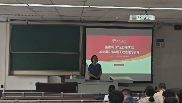 2025年10月23日下午,生命学院在九里校区J4106教室召开全体教职工大会暨政治理论学习。会议由学院党委书记黄春蓉主持,学院全体教职工参加...